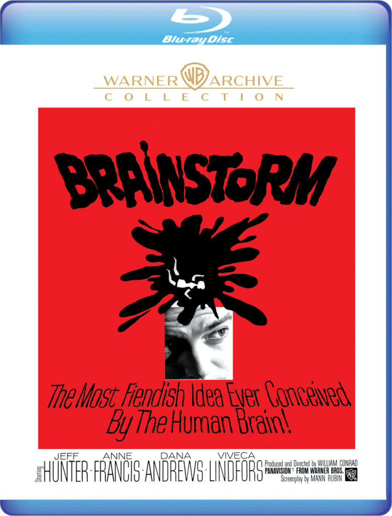 Brainstorm (Warner Archive) William Conrad, the portly star of TVs Cannon, shot three memorably crackpot films for Warner Brothers that I’m totally nuts over. Two on a Guillotine (1965) starring Connie Stevens returning to the spooky mansion of her magician father (Cesar Romero) for his funeral. My Blood Runs Cold (1965) starring Troy Donahue as a deranged young man who tries to convince a wealthy girl (Joey Heatherton) that she is the reincarnation of his long-lost love. And Brainstorm (1965), starring handsome Jeffrey Hunter, who plays Jim Grayam, a talented scientist working for Benson Industries, who rescues a drunken woman (in mink), parked in her car and passed out on a railroad track. She turns out to be Lorrie Benson (Anne Francis), the unhappy, suicidal wife of his wealthy, sadistic boss Curt Benson (Dana Andrews). They begin a dangerous affair, and when the vengeful Curt finds out he tries to discredit Jim and make him look crazy. Grayam decides to use this to do away with the husband (so he and Lorrie can be together) and pleads guilty of insanity after he kills Curt. His compassionate doctor at the mental institution is played by the superb Viveca Lindfors. But Jim’s plan backfires spectacularly in this sardonic thriller (which looks spectacular on Blu-ray in widescreen black and white). There are two Warner Brothers cartoons on the disc- be sure not to miss The Hypo-Chrondri-Cat, which is hilarious and fits perfectly with the film.