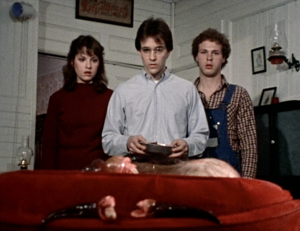 Two young campers are violently woken by a meteorite crashing down in the woods one night. They leave their tent and go to investigate and plan to photograph it when they are suddenly attacked and devoured by shadowy creatures. These alien invaders slip into the basement of a large house and reproduce at an alarming rate, quickly dispatching the husband and wife in a gruesome fashion. The others in the house are unaware of this, assuming the couple left early for the day. Besides a visiting aunt and uncle lives young monster movie fan Charlie (George Hildebrandt), his bedroom filled with horror posters and monster masks. Also in the house is his his older, astronomy-loving, brother Pete (Tom DeFranco). Pete’s high school friend show up for a study marathon but end up fighting an army of hideous creatures of all sizes that have infested the house and are chomping their way through.