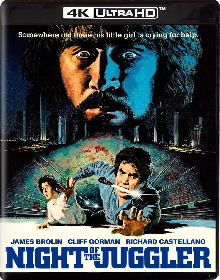 Night of the Juggler (Kino Lorber) I’m happy this gritty, 1980 action film, filmed on the mean streets of Manhattan at that time, gets a rediscovery. Originally directed by Sidney J. Furie, who shot the first half hour chronologically. But when the lead (James Brolin) got badly injured and the film went on hiatus he was replaced by Robert Butler when the film resumed. A bearded, bushy-haired James Brolin plays Sean Boyd, a truck driver (and ex-cop) living in the city with his 15-year-old daughter Barbara (Linda Miller). Cliff Gorman plays Gus, a raging, racist, psychotic creep who brazenly kidnaps Sean’s daughter on the street, mistaking her for the daughter of a real estate magnate. After that, Sean chases Gus and his daughter relentlessly across Manhattan. Through seedy Times Square and into the dangerous Bronx. Dan Hedaya plays a twisted police Sgt., Mandy Patinkin is hilarious as a loony cabbie, lovely Julie Carmen plays a woman who works in a dog pound who helps Sean search for clues as to where his daughter is. Richard Castellano, as a weary cop, sighs, “I got a feelin’ it’s gonna be another goddamn New York day.” Look for Warhol alumni Tally Brown as a peep show owner. Adult film star Sharon Mitchell plays a Times Square exotic dancer and wonderful actress Dorothy Lyman shows up briefly as a nurse. It’s a quintessential time capsule of NYC of 1980 and a blast to watch. Included is a new interview with James Brolin and one with Julie Carmen too. There’s also a great extra on Sidney J. Furie by Daniel Kremer, the author of a terrific book on the director’s life and career. The 4k UHD disc looks just incredible.