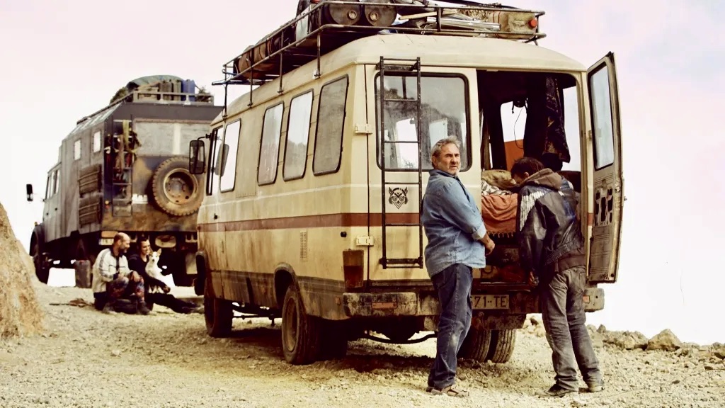 The military arrive and break up the party and Luis and his son slip free from them and follow a caravan of nomadic, tattooed, drugged-out travelers heading to another rave further down south. They try to dissuade Luis from following, pointing out his vehicle won’t be able to traverse the rugged terrain but he heedlessly pushes on, and is eventually adopted by the hedonistic family.