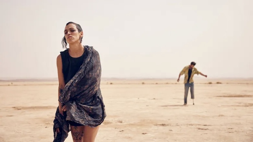 Winner of the Jury Prize at the 2025 Cannes Film Festival, Oliver Laxe’s nerve-shredding, trippy, nightmarish odyssey begins with a wall of weathered speakers being assembled in a gully surrounded by mountains in the barren Moroccan desert. Soon a wall of throbbing techno bass causes the crowd of stoned ravers to undulate to the music. In the crowd- Luis (Sergi Lopez) is handing out fliers searching for his missing daughter. He is accompanied by his young son Esteban (Bruno Nunez Arjona) and their little dog.